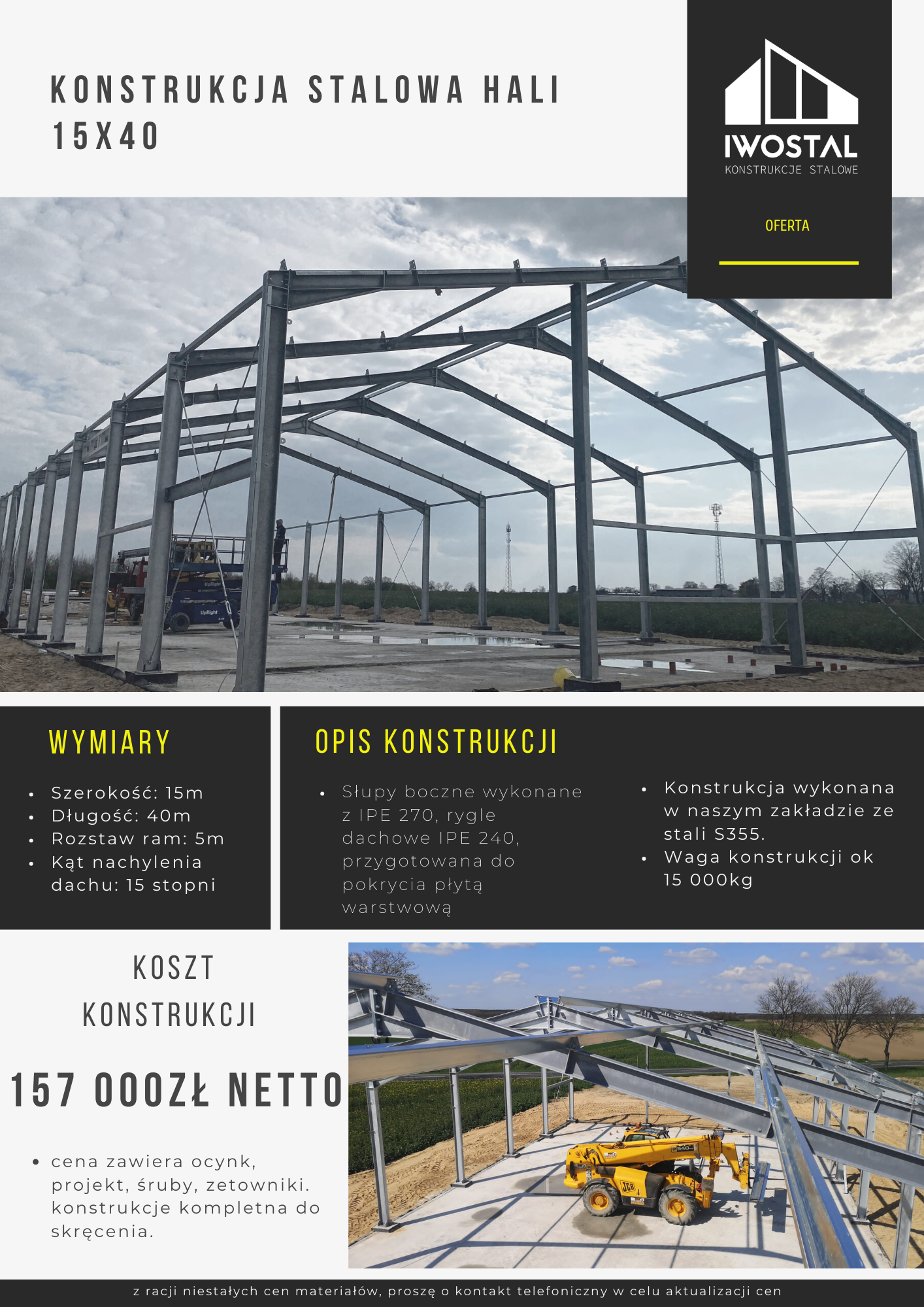 Witaj w zakładce Oferta, gdzie otwiera się przed Tobą panorama naszych unikatowych hal. Znajdziesz tutaj nie tylko nowoczesne hale magazynowe i produkcyjne, ale również przestronne hale rolnicze oraz funkcjonalne hale jeździeckie. Rozpocznij podróż po różnorodności naszych projektów, tworzących przestrzenie idealnie dopasowane do różnych zastosowań.