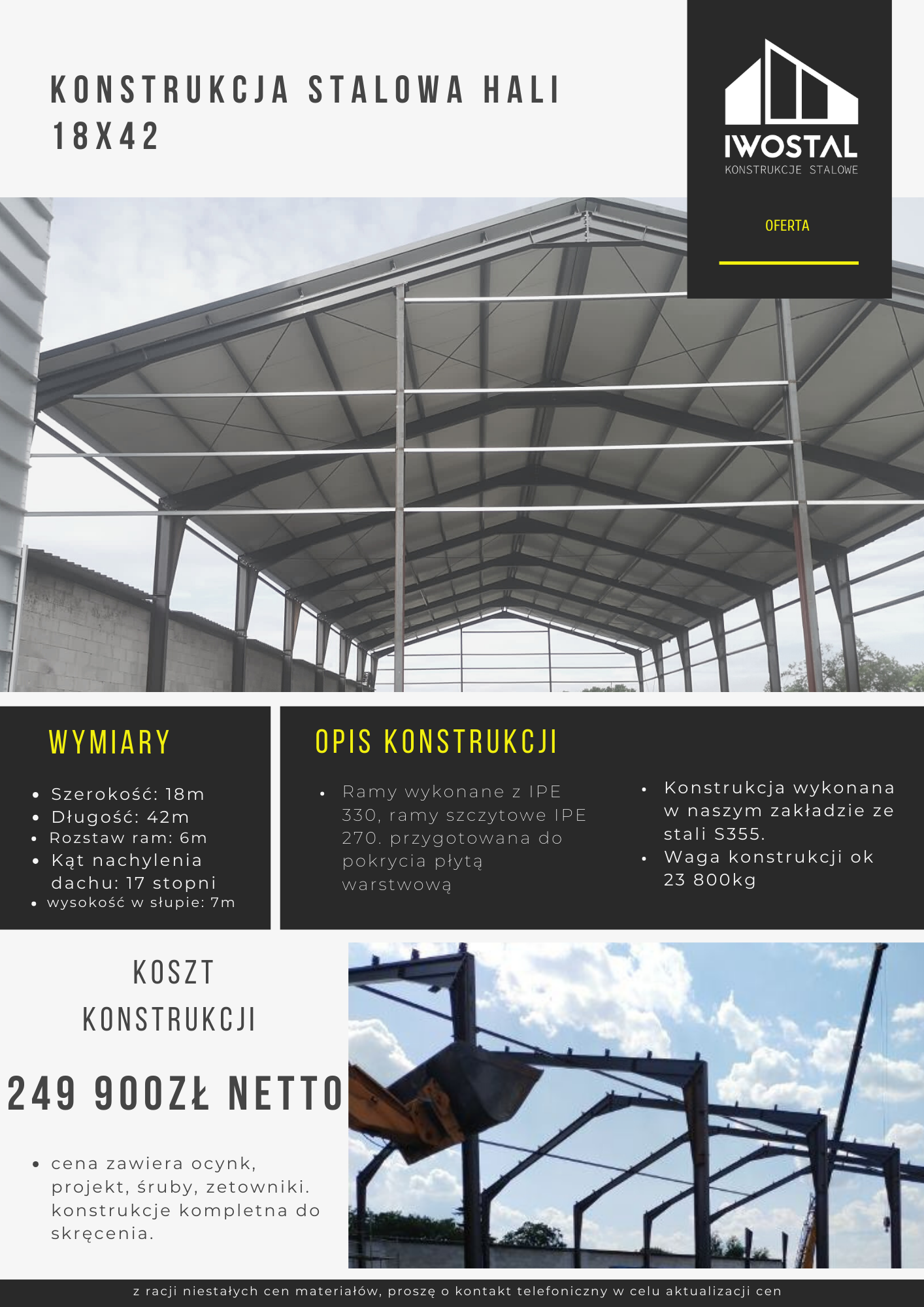 Nasze innowacyjne konstrukcje to nie tylko przestrzeń, ale elastyczne rozwiązania dostosowane do różnorodnych celów. Poznaj nasze hale, które nie tylko spełniają, lecz przekraczają oczekiwania – od magazynów po przestrzenie produkcyjne. Daj swoim projektom solidne fundamenty i przekonaj się, jak nasze hale zmieniają sposób patrzenia na architekturę przemysłową.